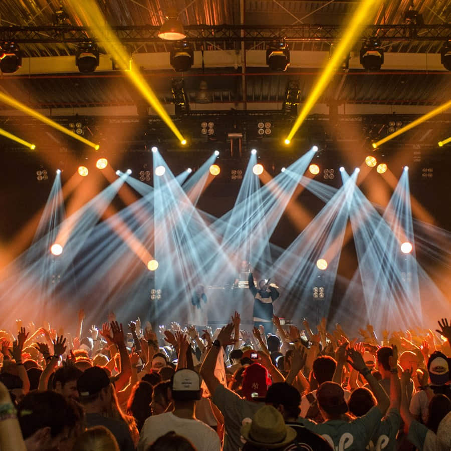konser besar, acara outdoor, festival musik, pertunjukan teater, pencahayaan stadion, acara olahraga, panggung utama, upacara pembukaan, parade malam, pameran besar.